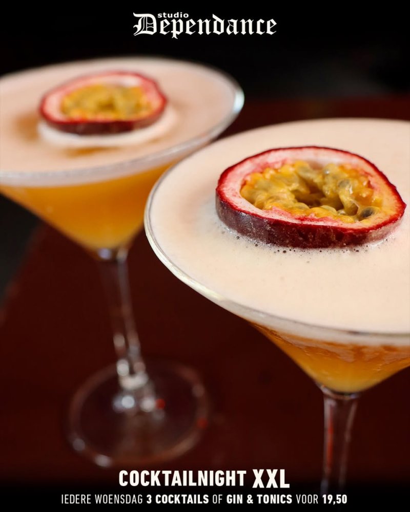Breek je week doormidden op een tropische manier tijdens de Cocktailnight XXL. Iedere woensdag kun je bij Studio Dependance genieten van de Cocktailnight XXL. Een avond gevuld met drie heerlijke cocktails voor maar €22,50 per stempelkaart.