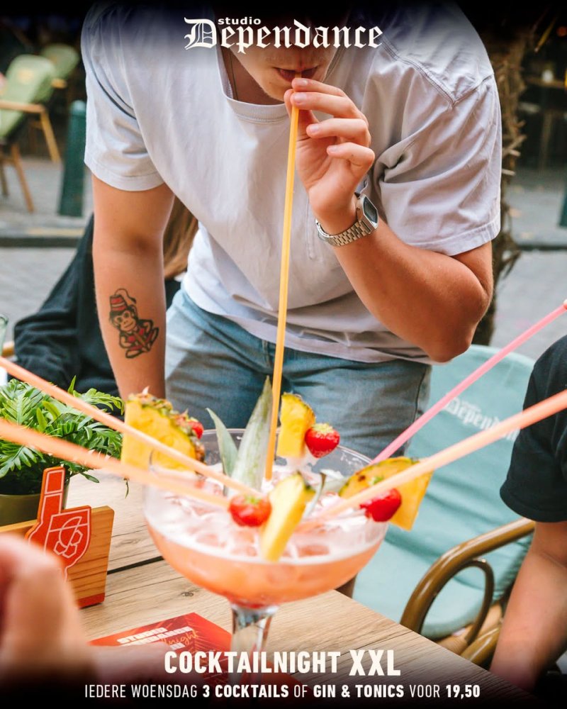 Breek je week doormidden op een tropische manier tijdens de Cocktailnight XXL. Iedere woensdag kun je bij Studio Dependance genieten van de Cocktailnight XXL. Een avond gevuld met drie heerlijke cocktails voor maar €22,50 per stempelkaart. Onze bartenders halen alles uit de kast om jou één van onze heerlijk tropische of juist verfrissende cocktails te laten proeven! Wil jij echt hé-le-maal XXL gaan?! Dan hebben we exclusief op woensdagavond XXL-Cocktails waar je maximaal van kunt genieten! Lees verder
