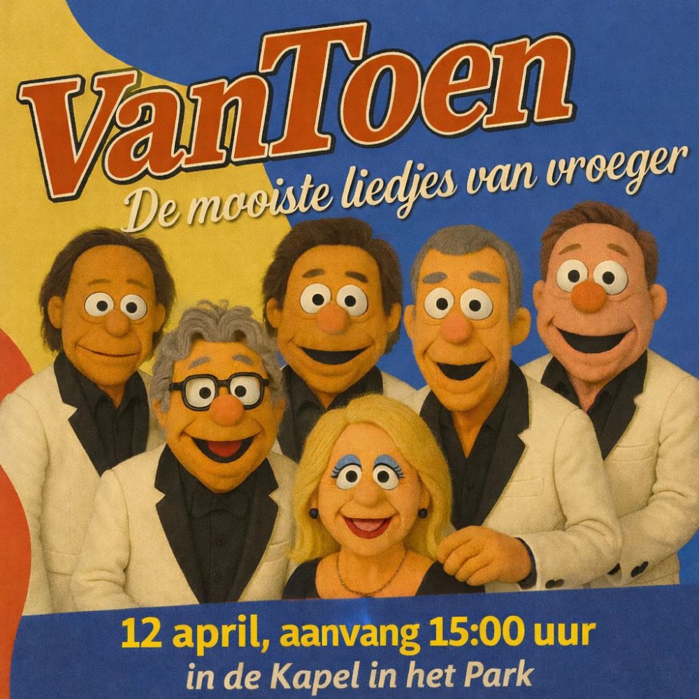 Van Toen in De Kapel zondag, 12 april 15:00 De Kapel in het Park De band Van Toen met de mooiste liedjesvan toen. Lees verder Vanwege het enorme succes is het zover: de 2e editie!12 april, aanvang 15:00 uurDe band Van Toen met de mooiste liedjesvan toen. Stationsstraat 28a, 4872 TD Etten-Leur