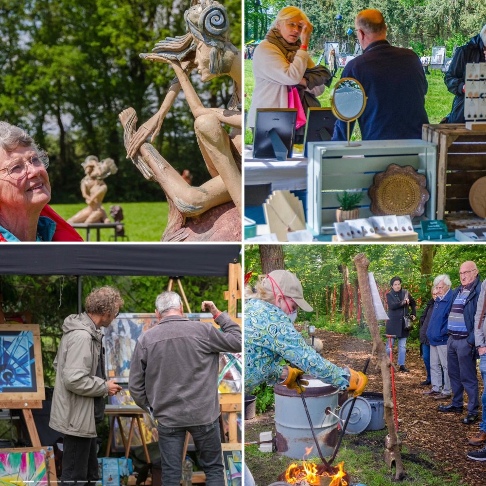 Gedurende dit weekend valt er voor jong en oud veel te beleven op deze locatie. Kunst, cultuur en culinair genieten vloeien hier samen bij de bloementuin, de aspergevelden en de wijngaard. Zo'n 20 beeldend kunstenaars van naam tonen beeldhouwwerk in steen, hout en brons, keramiek, metaal, glas, schilderijen, textiel, leerbewerking, emaille en sieraden. In een natuurlijke omgeving is een route uitgezet met beelden van de professionele kunstenaars.