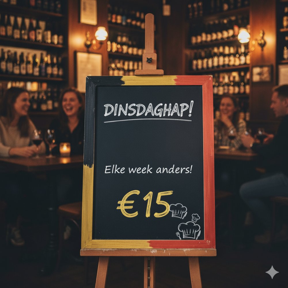 Op zoek naar een reden om uit eten te gaan op dinsdag? Gevonden! Vanaf nu tovert onze chef elke week een ander heerlijk gerecht op tafel. Voor slechts €15.  Laat je verrassen door de creaties van onze chef en geniet van een smakelijke en betaalbare maaltijd.