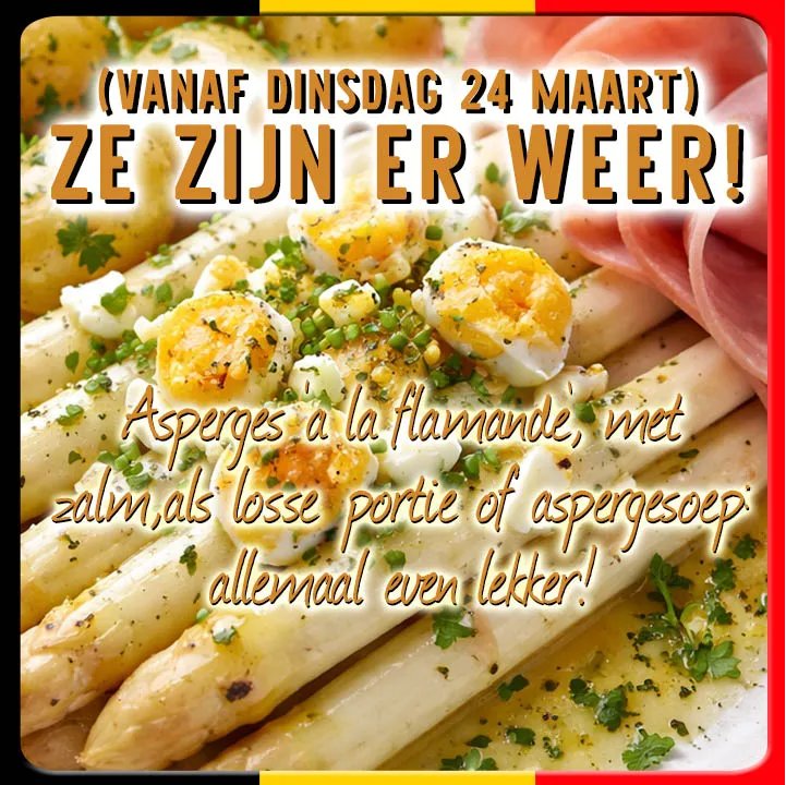 Ze zijn er weer!!! ASPERGES 24 maart - 31 mei Café Belgique Breda Asperges Lees verder Vanaf dinsdag bij ons te verkrijgen..Zeker zijn van een plekske en lekkere asperges???Reserveer via mail cafebelgique.breda@gmail.com of bel 06.20178074🇧🇪🇧🇪🇧🇪Tot Belgique 🇧🇪🇧🇪🇧🇪 Nieuwe Ginnekenstraat 2, 4811 NM Breda