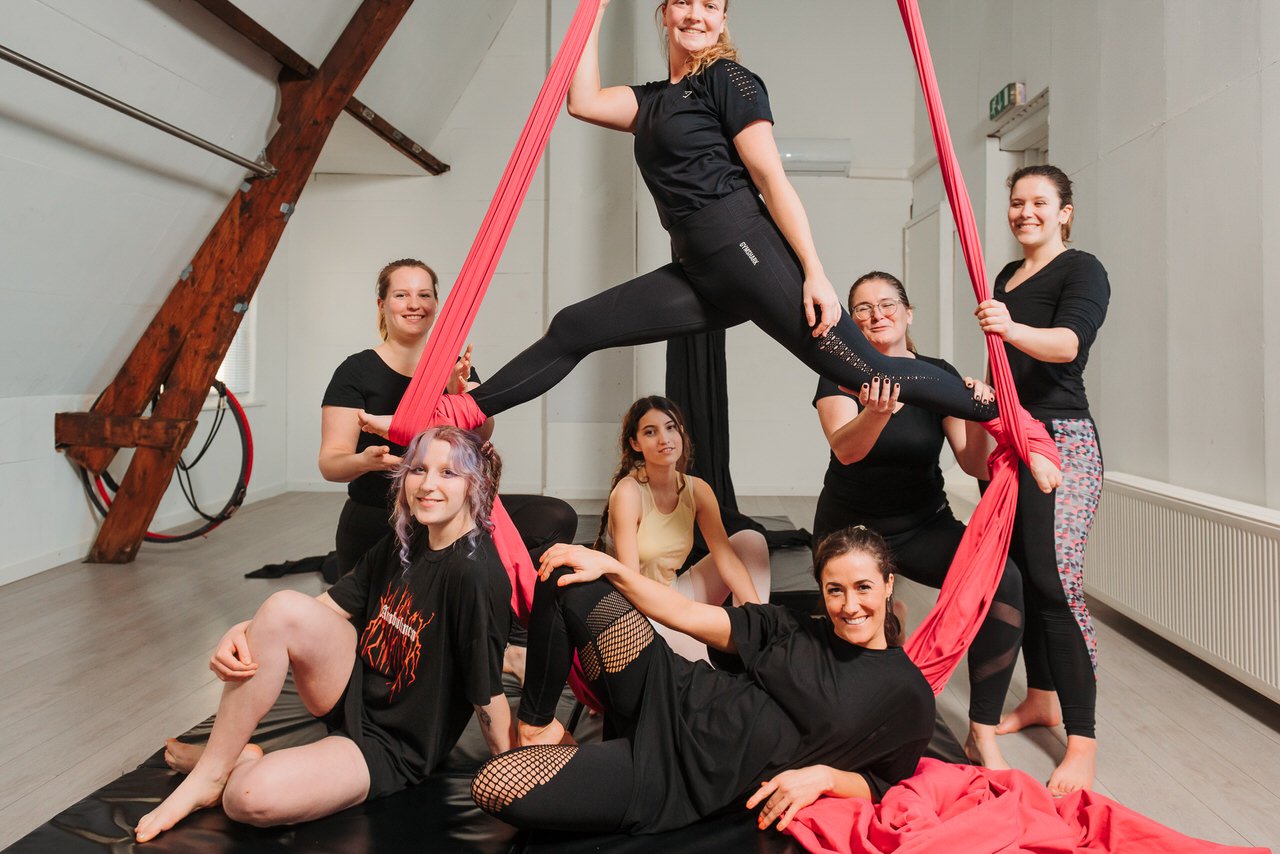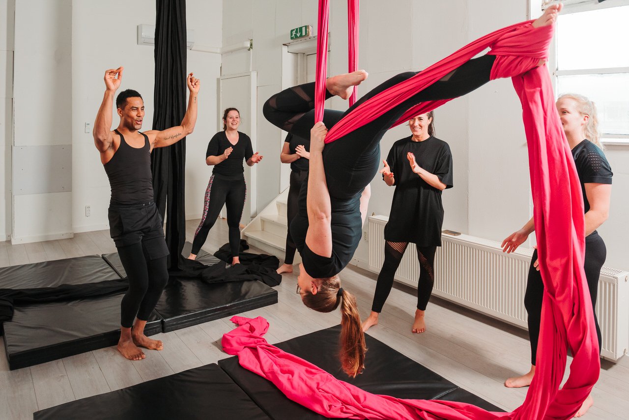 De workshop aerial silk is voor beginners en gevorderde sporters goed te volgen. De trucs en poses in de lucht zijn op verschillende niveaus te doen. Leuk om te doen als vrijgezellenfeest, vriendinnenuitje, verjaardagsfeest of studentenvereniging.