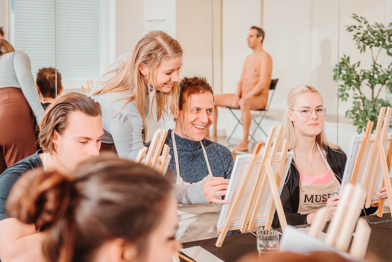 Naaktschilderen is een leuke en leerzame workshop waarbij je op een andere manier bezig bent met kunst. Met verschillende verf en tekentechnieken en een ervaren schilderdocent kan je jouw creativiteit loslaten op het doek.