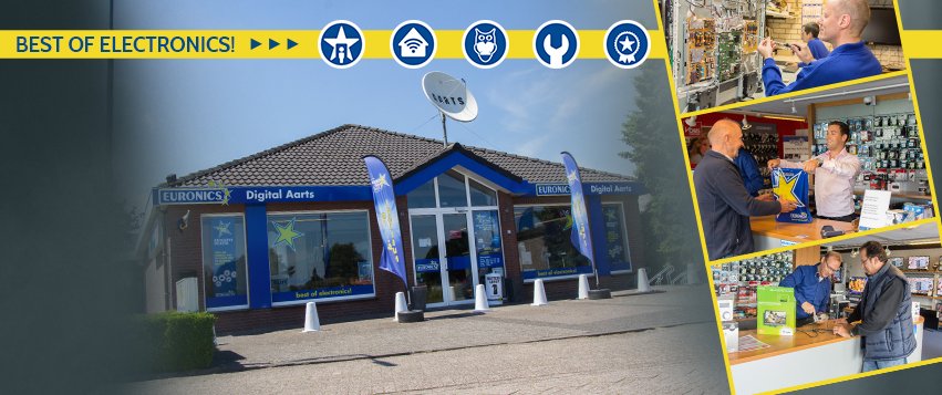 Over Digital Aarts Beeld en Geluid Euronics Digital Aarts Beeld en Geluid is een gespecialiseerde vakzaak in verkoop, reparatie en installatie van audio-video-computer-telefonie en bewakingsapparatuur.