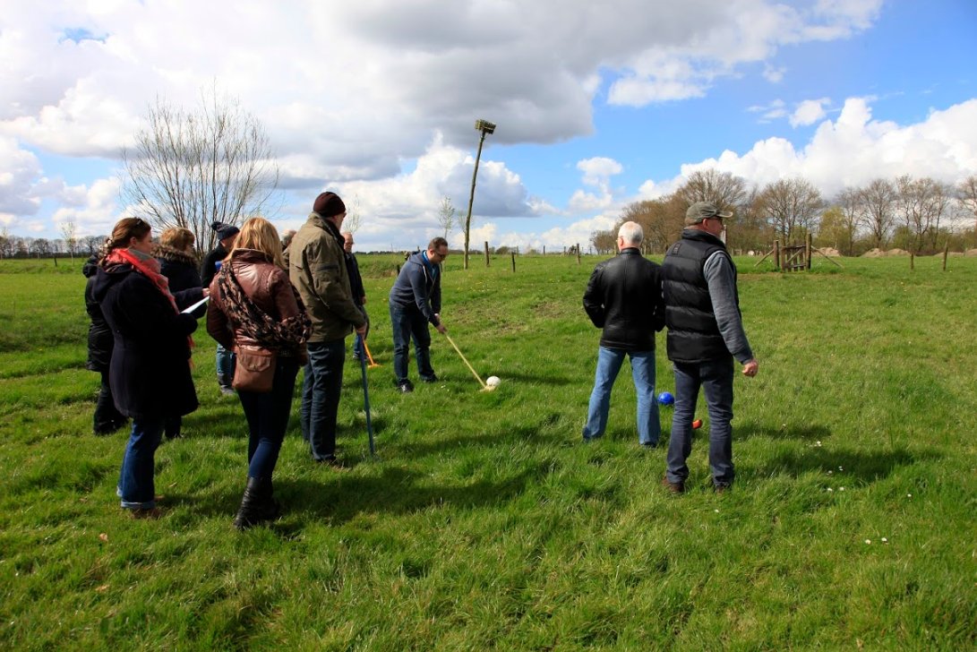 Boerengolf is een variant op het bekende golfspel en al jaren een succes voor elk groepsuitje. In het weiland tussen de koeien is een golfbaan uitgezet van 10 holes. Eén hole heeft een lengte tussen 150 en 300 meter en alle holes samen hebben een totale lengte van 2,5 kilometer. Elke hole heeft zowel natuurlijke als kunstmatige hindernissen en als eindpunt een ingegraven melkemmer als put. Boerengolfen is lekker lopen door weilanden in het mooie weer met vrienden, familie of collega’s. Het is een activiteit geschikt voor elke leeftijden ongeacht sportieve aanleg. Omdat het in de weilanden plaats vind verminderd geschikt voor mensen die slecht ter been zijn, een rollator gebruiken of in een rolstoel zitten. Minimaal aantal personen: 2 Tijdsduur: 1,5 tot 2 uur. Kosten:€8,50 p.p. Lees verder