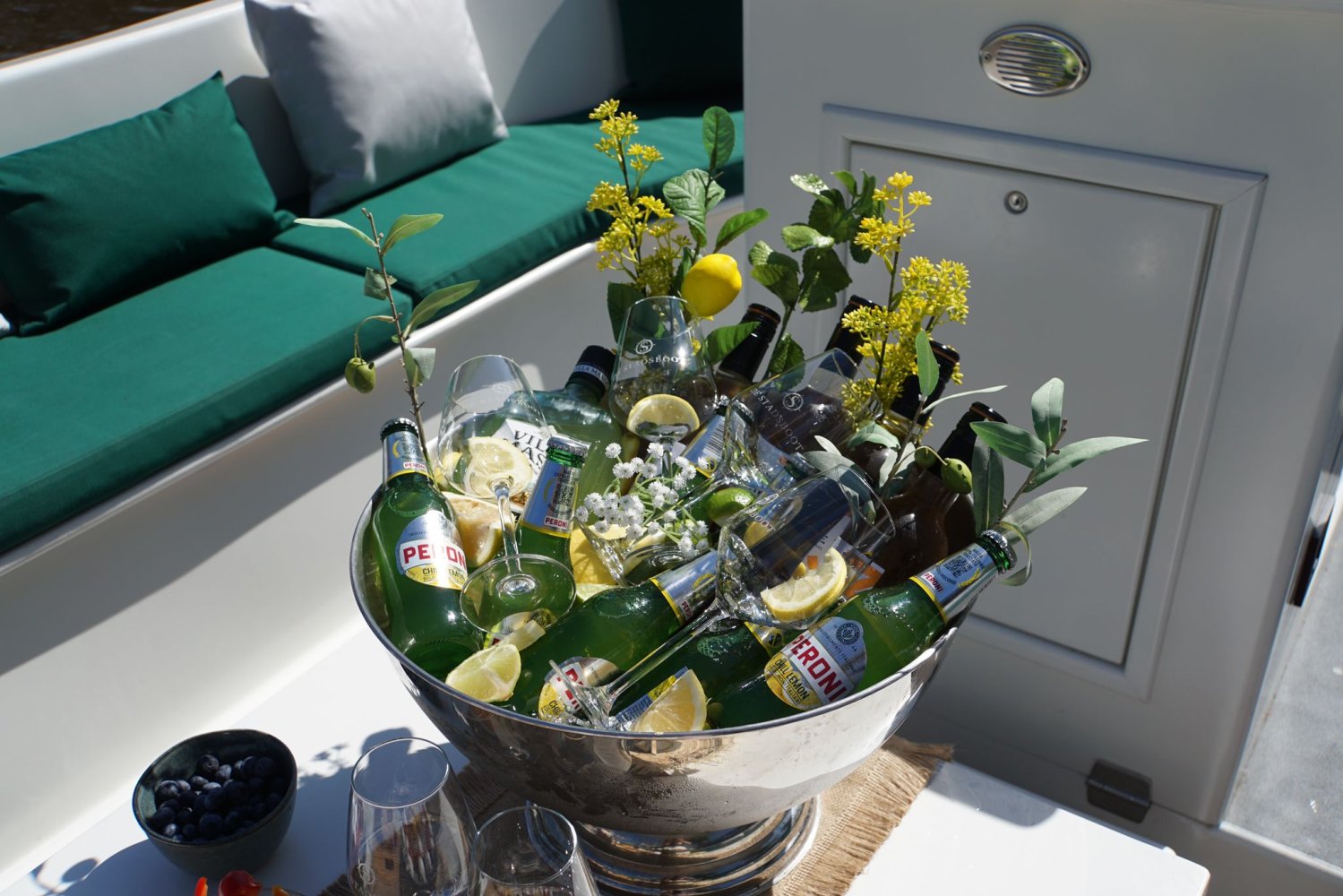 Arrangement: Drankjes aan Boord Tijdens de twee uur durende tocht kun je onbeperkt genieten van een zorgvuldig samengesteld assortiment aan drankjes. Kies uit koud bier, een selectie van droge witte wijn en rosé uit Zuid-Frankrijk, en verfrissende frisdranken. Alle drankjes worden gekoeld met ijs en geserveerd in stijlvolle wijnkoelers. Liever alleen wijn of bier? Ga dan voor onze wijnboot of bierboot voor een volledig op maat gemaakte ervaring.