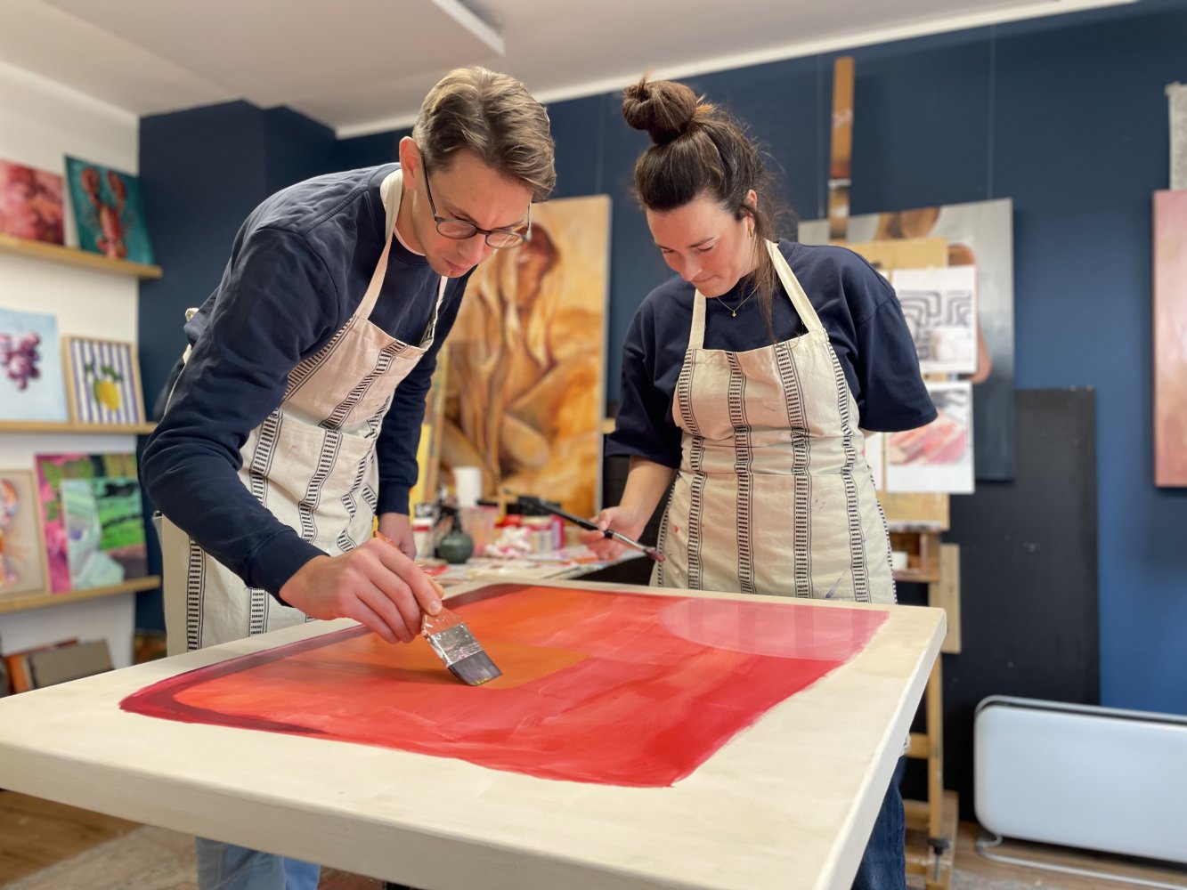 Tijdens een privé workshop schilderen bij Schilder Studio Breda werk je alleen of met z’n tweeën aan een persoonlijk kunstwerk dat volledig is afgestemd op jouw smaak, stijl en interieur. Vooraf verzamel je inspiratie en denk je na over kleuren en sfeer. In het atelier bespreek je deze ideeën samen met beeldend kunstenaar Daphne Schrijver en bepalen jullie de richting, techniek en opzet van het schilderij.