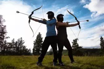 Schiet op elkaar met pijl & boog. In dit uitdagende spel schiet je met pijl en boog op elkaar! De pijl heeft een zachte larp-kop, waardoor je kan schieten op de tegenstanders aan de overkant.