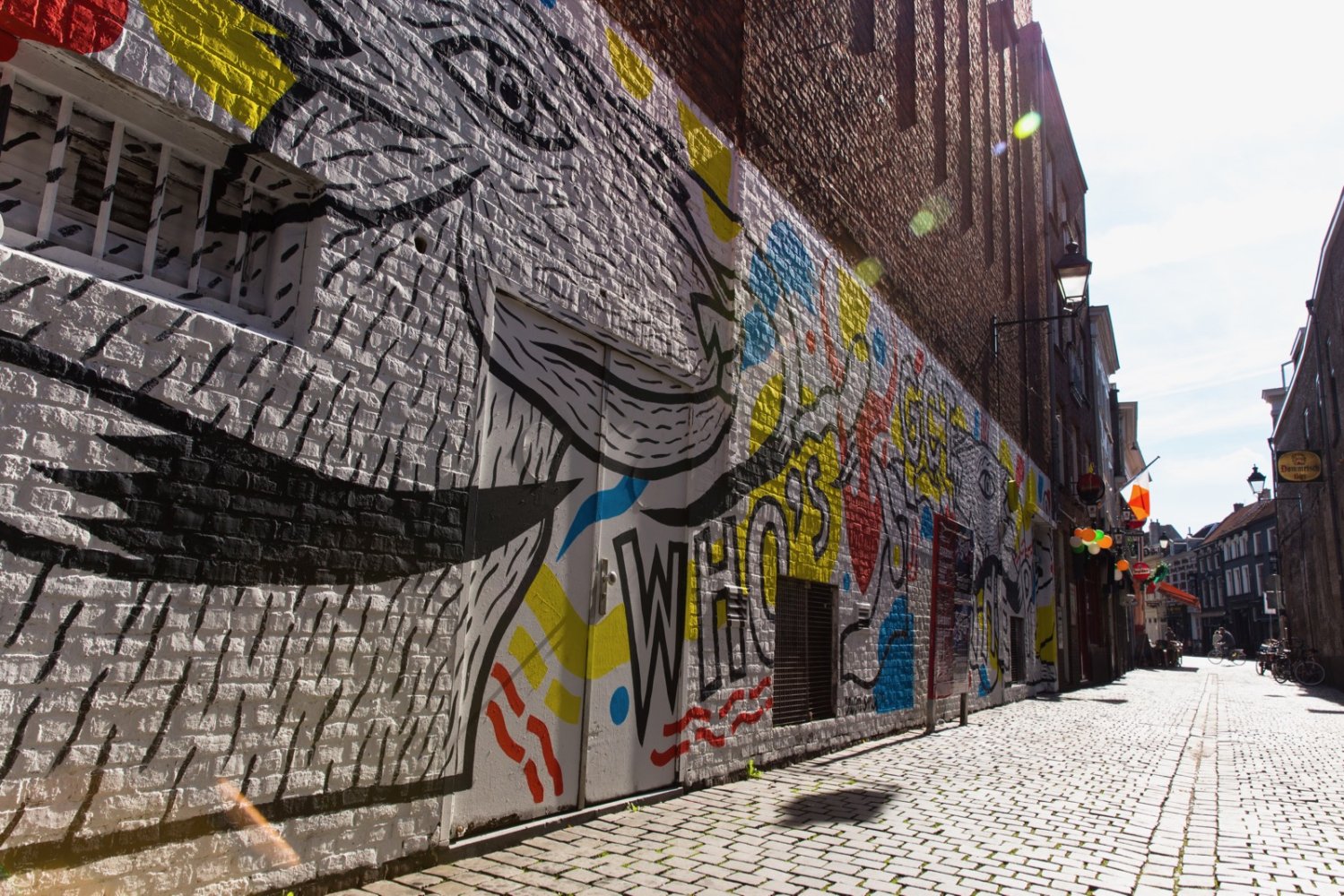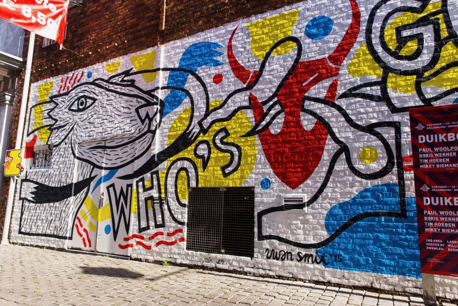 Het startpunt voor deze schildering was op de muur achtergebleven logovan het studenten dispuut Phileas Fogg (tevens gevestigd in de Schoolstraat).Iwan Smit uit Nederland reageert met zijn vraag “Who’s got the power?” op detraditie van de verschillende logo’s op deze muur. Hij stelde de vraag aanpassanten en nodigde andere disputen uit tot reactie.