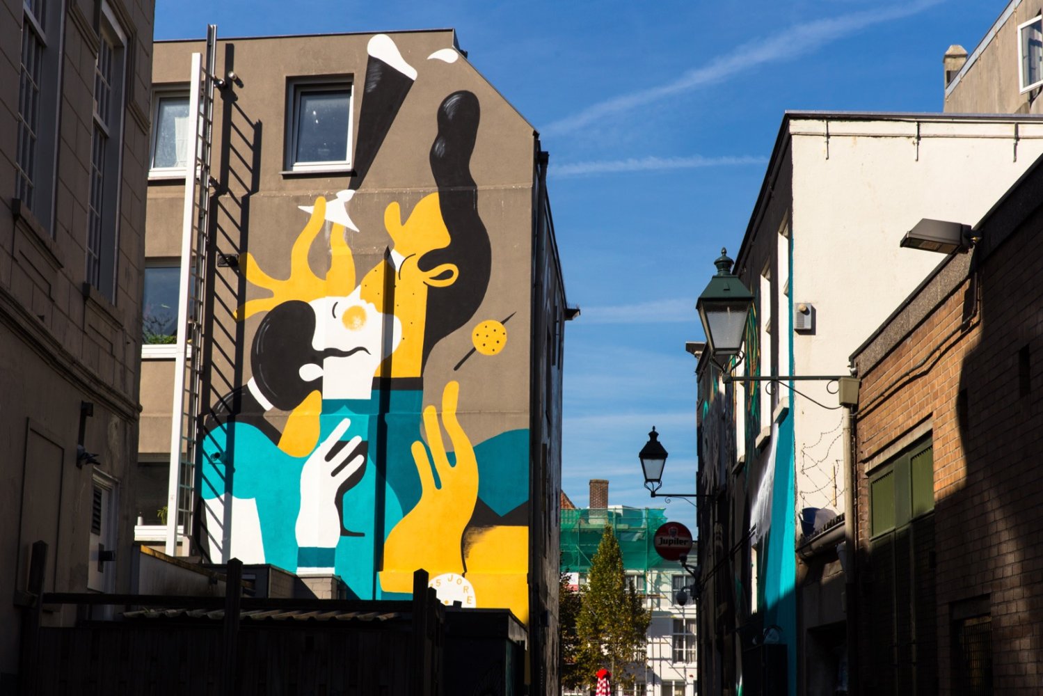 Dit werk werd speciaal gemaakt om de Potkanstraat visueel te verbeteren (zoals 4, 5 & 7). Qua kleur verwijst de schildering naar water van de haven. Het feestende duo, met een drankje en bitterbal in de hand, brengt een ode aan het Bredase uitgaansleven. Lees verder