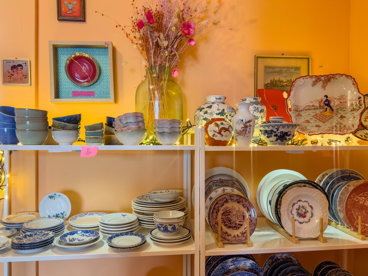 Het idee achter Lokaal 66 is even liefdevol als origineel: oude voorwerpen, popart, speelgoed en bijzondere spulletjes krijgen nieuw leven in de winkel, terwijl oude scherven juist mooi worden hersteld in het Kintsugi Atelier. De Japanse kunstvorm kintsugi, waarbij aardewerk wordt verbonden met goud of goudkleurige lak, zorgt ervoor dat reparaties worden benadrukt in plaats van verhuld. “Hier mag imperfectie gezien worden,” zegt de eigenares Annemarie.