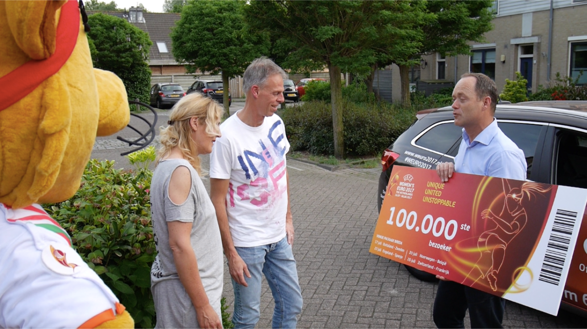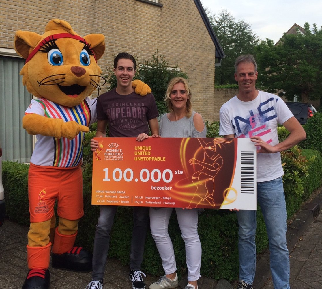 Doordat hij deze week twee kaarten voor de openingswedstrijd Nederland – Noorwegen bestelde, werd hij de 100.000ste bezoeker van het UEFA Women’s EURO 2017. Hij ontving een uitnodiging voor alle poule wedstrijden die deze zomer in speelstad Breda worden gespeeld. ”Naast het behalen van een record aantal bezoekers, al meer dan 16.000, voor de openingswedstrijd op 16 juli in Utrecht is dit opnieuw een mooie mijlpaal voor het toernooi, op naar de volgende 100.000”, zegt Bert van Oostveen, toernooidirecteur UEFA Women’s EURO 2017.