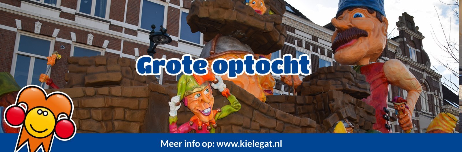 Tijdens de Grote Optocht van ’t Kielegat zullen om 12.00 uur vanaf einde Haagdijk (Kopse Kant) de wagens starten. Om 11 minuten voor 1 voegen de loopgroepen vanaf de hoek Haagdijk/Prinsenkade in en loopt alles in de juiste volgorde zoals vermeld in de Kontklopper. De tocht volgt de bekende route via de Prinsenkade, de Vismarktstraat en Reigerstraat naar de Grote Markt, om via de Halstraat, Houtmarkt en de Ginnekenstraat, de Keizerstraat op te draaien. Daarna is het via de Oude Vest en de Vlaszak richting de Boschstraat, waar het hele feest eindigt.