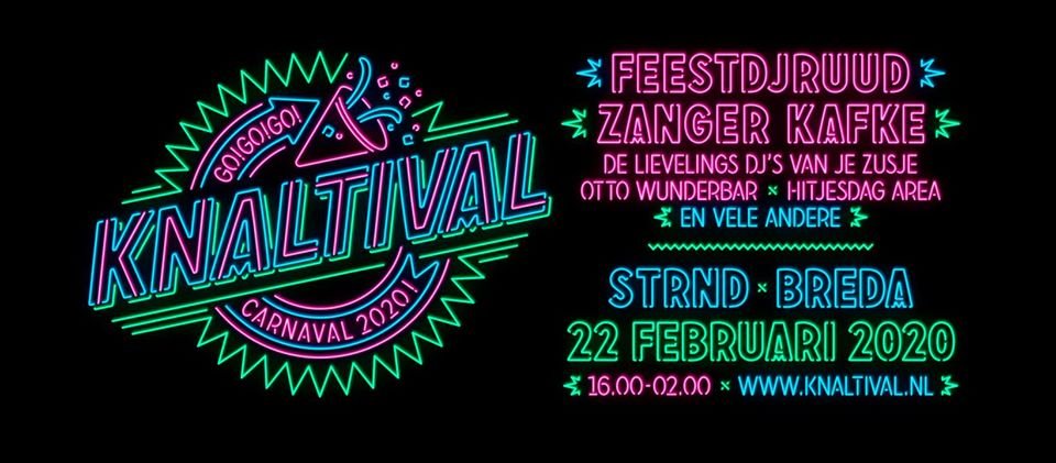 Ook in 2020 is Knaltival weer je favoriete carnavalsfeestje! Met dit jaar weer een vette line up van onder andere Feestdjruud, Zanger Kafke en Hitjesdag DJ Team. Tickets zijn verkrijgbaar via http://bit.ly/Knaltivaltickets. Op 22 februari begint dit leuke feestje om 16:00 en het duurt tot 02:00 (deuren sluiten om 23:00).