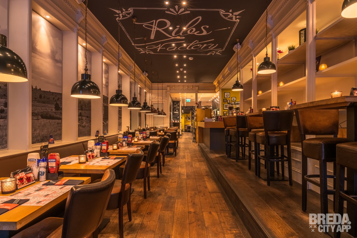 Ribsfactory is gevestigd aan de Grote Markt, middenin het centrum van Breda. Het restaurant is gehuisvest in een monumentaal pand. De karakteristieke elementen van weleer geven Ribsfactory Breda een bijzondere sfeer. Ribsfactory Breda heeft een open keuken, dus je kunt met eigen ogen zien hoe jouw spareribs, burger of steak bereid wordt. Het restaurant heeft 90 zitplaatsen en een terras met 100 zitplaatsen.