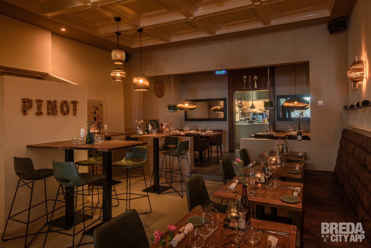 De beste wijnbar van Breda is misschien wel Pinot. Een avondje uit bij Pinot wordt een beleving met uitzicht op de prachtige Grote Kerk. De sommeliers helpen je een keuze te maken uit de collectie van wereldwijnen, terwijl de keukenbrigade er een overheerlijk en bijpassend gerecht bij maakt van de menukaart. Verrassende wijn-spijs combinaties zijn de specialiteit van het restaurant.