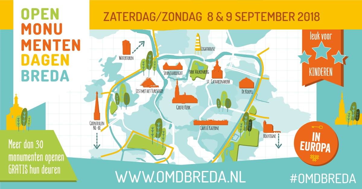Slenteren over de Ambachtenmarkt, of sportief suppen in de Singels. Fietsen langs de Turfvaart, of jawel... slapen in de Grote Kerk! Het kan allemaal tijdens de Open Monumenten Dagen Breda 2018. Op zaterdag 8 en zondag 9 september openen bijna veertig monumentale panden hun deuren en is het programma uitgebreider dan ooit. Naast de vertrouwde iconen van de stad, brengt het programma dit jaar veel vernieuwing.