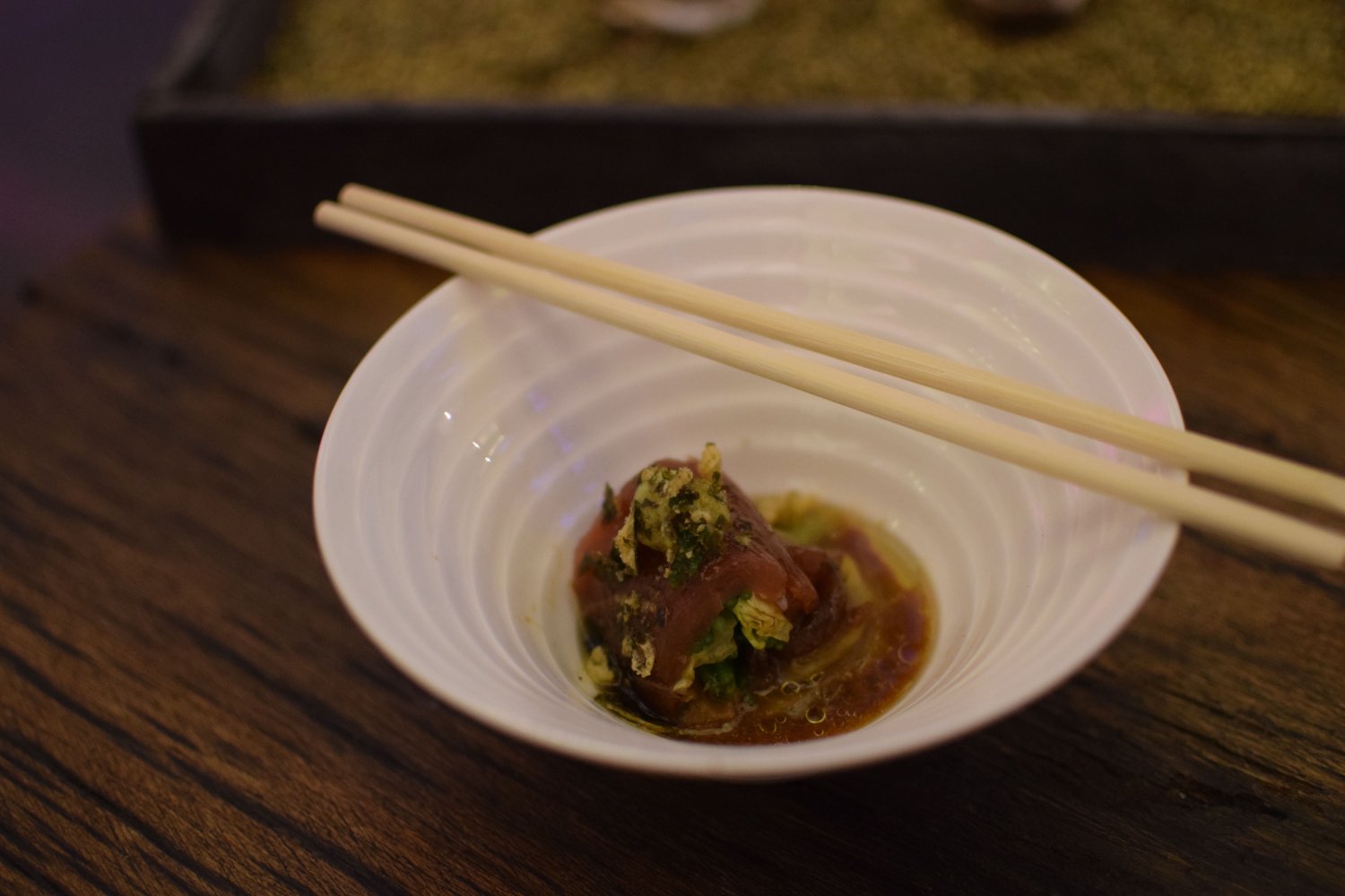Tonijn by Pascal met zeekraal, gember, munt, tosa dashi en Thaise curry