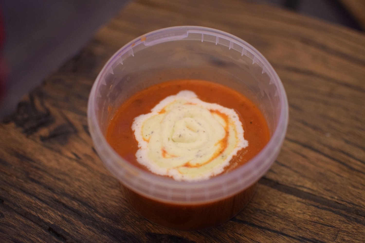 Huisgemaakte, zeer goed gevulde, mooie stevige tomatensoep. Een verassend lekker gerecht zoals Zeezicht dit ook in het restaurant serveert. Er zitten volgens eigenaresse Daan enkele geheime ingrediënten in, uiteraard bleven deze geheim. Doe zeker een poging om deze ingrediënten te proeven! De structuur van tomaat is zeer duidelijk terug te vinden in de soep. Bovenop de soep werd een toefje ongezoete kruidenroom toegevoegd.
