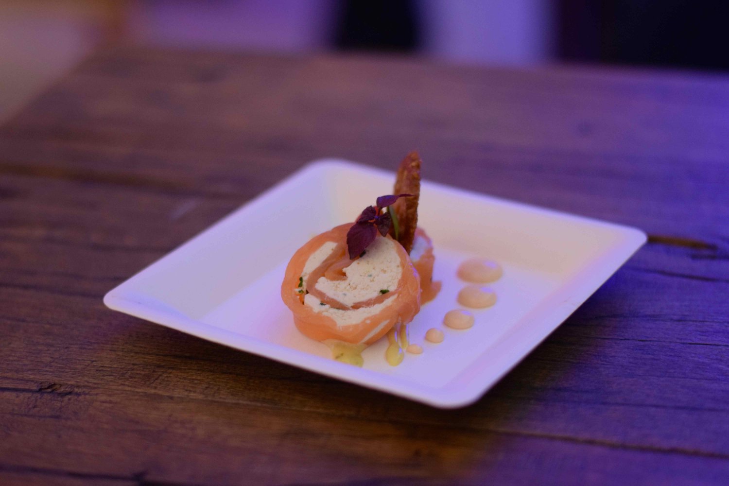 De rouleau van zalm is gevuld met forelmousse, tuinkruidendressing en wordt geserveerd met een kletskop voor de bite. Dit gerecht is een klassieker, altijd lekker. De tuinkruidendressing is erg lekker en past perfect bij de zalm. De kleur van de zalm en forelmousse zorgen voor een mooie combinatie aan kleuren. De bijpassende wijn is de Torres gran Vina Sol, een hele pure chardonnay. Het gerecht en de wijn vullen elkaar goed aan en zijn erg smakelijk.
