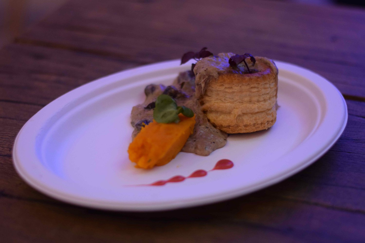 Het derde gerecht is een pasteitje eendenragout. De eendenragout is gevuld met kastanjechampignons, een vleugje truffel en een canelle van pompoencréme. Het is een mooie ragout, rijkelijk gevuld met eend. De smaak van truffel is heel typisch, maar absoluut niet overheersend. De bijpassende wijn is de Torres Alton Ibéricos. De smaak is vrij sterk, maar past hierdoor goed bij de typerende smaak van de eend. De combinatie is erg mooi, de wijn heeft een wat donker karakter welke de smaak van de eend goed naar voren brengt.