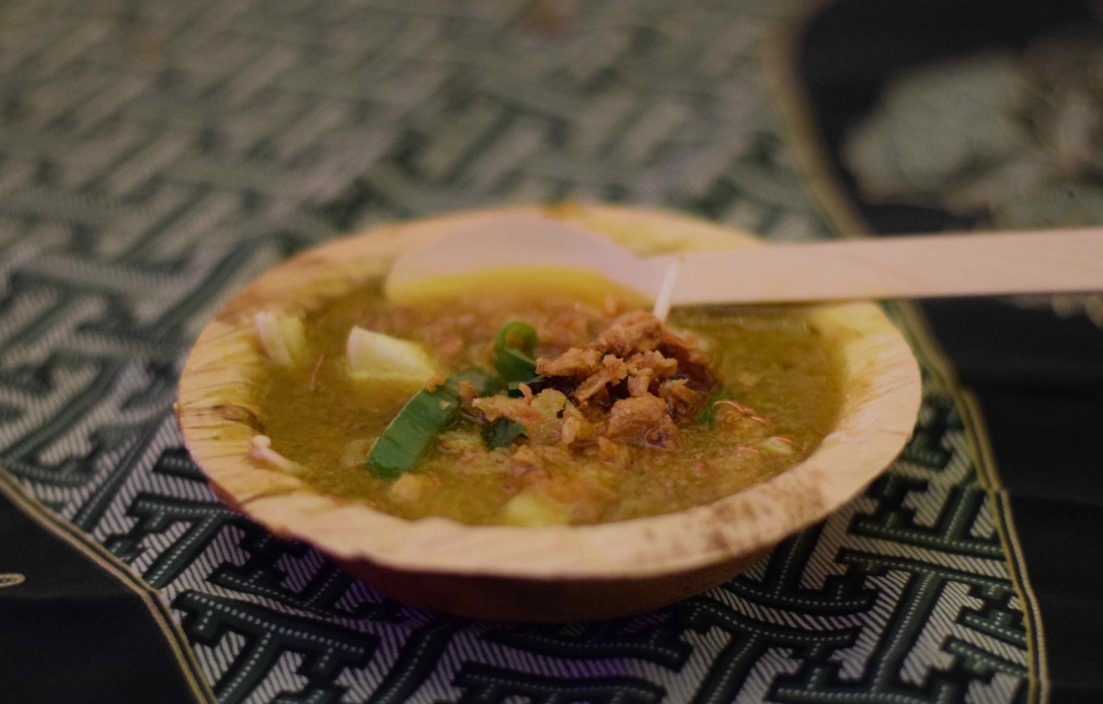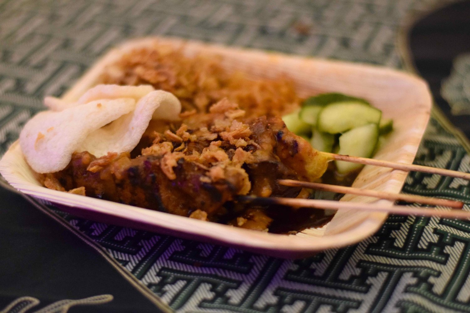 Bij de Satéhut werden er drie heerlijk gerechten geserveerd: Soto Ayam, verschillende sateetjes en Kue Dadar, een echt uniek gerecht. De Soto Ayam is een goed gevulde Javaanse kerriesoep met kip, lontong en verse groente. Een hele mooie rijk gevulde bouillon. Een echt Indonesisch gerecht dat huisgemaakt is! De soep is gevuld met lekker veel prei en kip.