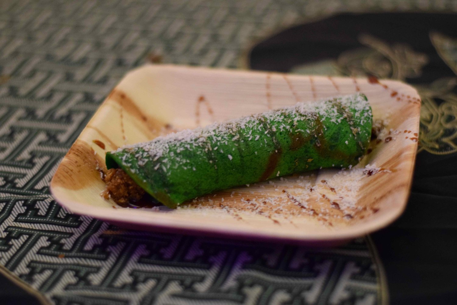 De Kue Dadar is een uniek gerecht! Het is een pandanflensje gevuld met palmsuiker en afgegarneerd met een klein beetje kokos. Erg lekker en heel zoet. Kue Dadar is een soort pannenkoek, met kleurstoffen en pandanvulling. Het gerecht wordt geserveerd met siroop en bruine suiker. Een erg mooie verbinding tussen de Nederlandse en Indonesische cultuur.