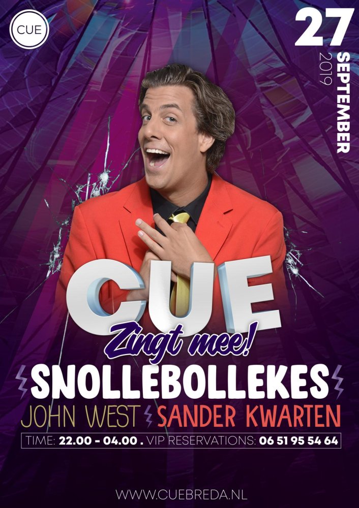 Het is zover! Deze vrijdag komen Snollebollekes, John West, Sander Kwarten en Ferry Gorden naar CUE Breda. Ben jij ook zo'n fan van Hollandse feestjes? Dan is dit echt wat voor jou!