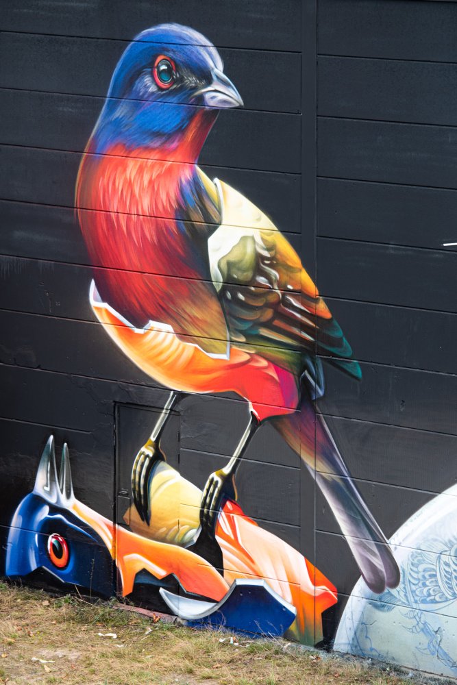 Electron-huisgenoot Rutger Termohlen nodigde Collin van der Sluijs en Super A uit, om samen het kunstwerk te maken. De drie zijn internationaal gevestigde kunstenaars in de wereld van murals. Het concept is geïnspireerd op bewoners die tussen de lockdown-momenten door talloze verhalen en anekdotes deelden met Electron. Kinderen ontwierpen nestkasten, die Electron met Studio ID het volgende broedseizoen mét de kinderen in de wijk gaat plaatsen. Het leidde tot deze blind wall vol (letterlijk) ‘fantastische‘ vogelsoorten: fictieve vogels die symbool staan voor familie, diversiteit, transformatie, veerkracht, hoop en trots. Waarden die we in donkere tijden het hardst nodig hebben. Blind Walls Gallery neemt het werk op in haar programma.
