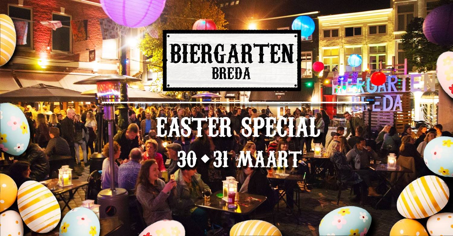 Tijdens Biergarten Breda Easter Special 2018 zijn de volgende (speciaalbieren) van de tap: Paas Ij, 'T Ij zatte, Big Belly Jumping Jack, Pij Blond, Frontaal East, Jopen lentebier, Jopen malle Babbe Weizen, Duvel, Leffe blond.