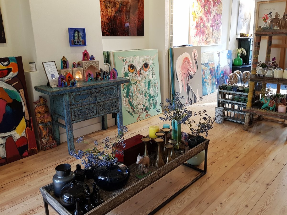 "We geven advies in grootte, kleuren en andere mogelijkheden. Kopers hebben altijd 14 dagen retourgarantie, waardoor je kunt uitproberen of iets zo uitpakt zoals je hoopt. Wij vinden het belangrijkste dat mensen tevreden zijn met hun aankoop. Vanuit het hele land komen mensen onze winkel bezoeken. Ons aanbod is qua prijs gunstiger dan in grotere steden." Er is ook een aantrekkelijke kunstkoopregeling. Een kunstwerk wat normaal gesproken buiten je budget valt, wordt ook bereikbaar voor de liefhebber door middel van een lage maandelijkse betaling.