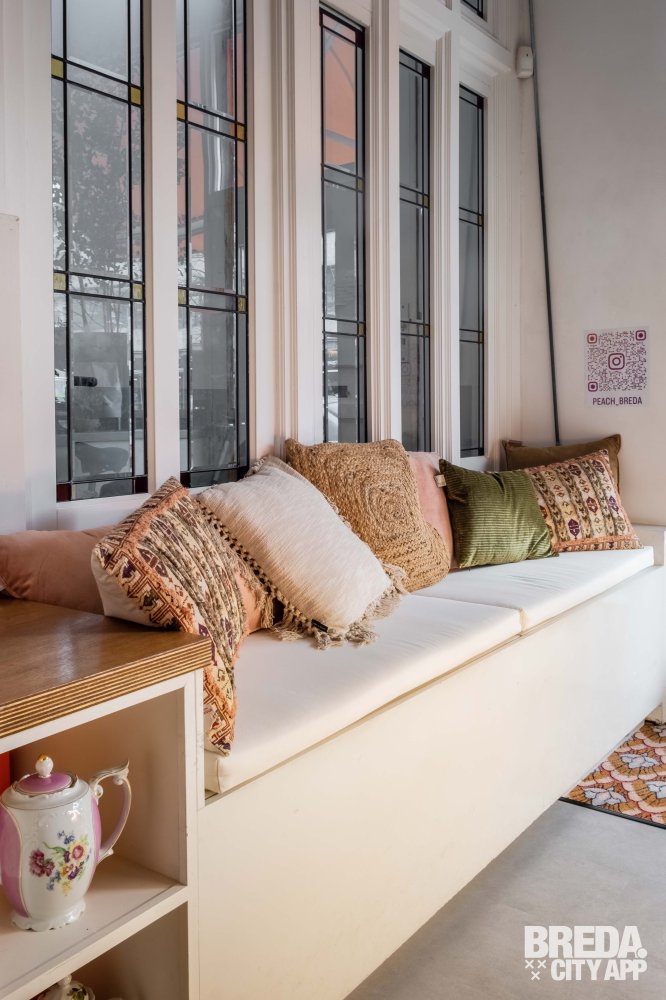 Bij PEACH kun je de hele dag terecht voor brunchgerechten. Denk hierbij aan burrito’s, bagels, taart, bowls, smoothies en koffie. Ook ben je van harte welkom voor een high tea. De zaak heeft 35 zitplaatsen! In april opent ze ook haar achtertuin, waar je heerlijk van het all-day brunch menu kunt gaan genieten.