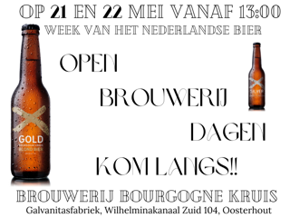 Tijdens de Week van het het Nederlandse bier is op 21 en 22 mei de Brouwerij Bourgogne Kruis open voor bezoekers. Kom het lekkerste bier uit Brabant proeven en kijken waar het bier wordt gebrouwen in Oosterhout.