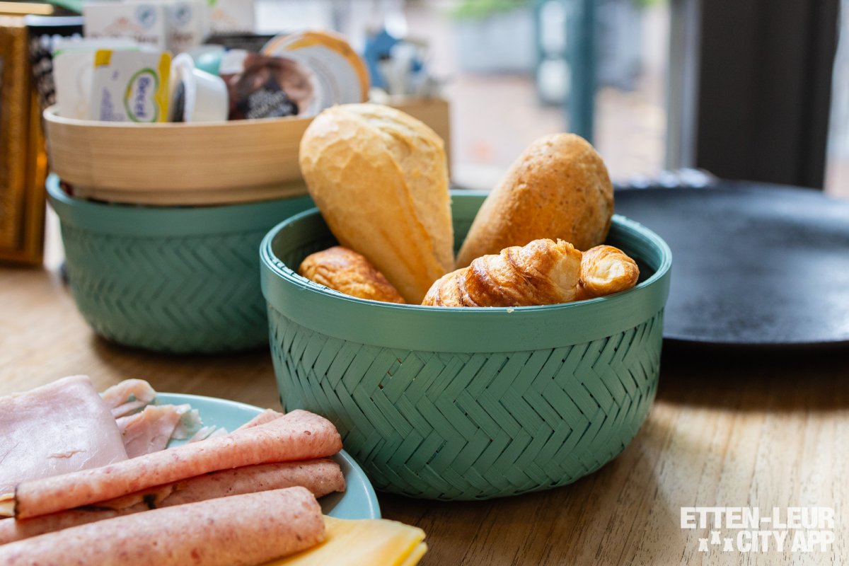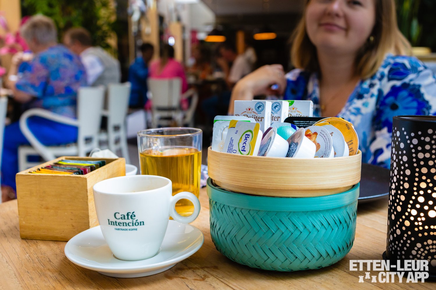 We worden hartelijk ontvangen, en onze tafel staat al klaar. Een charmant schilderijtje met onze namen staat op de tafel, wat laat zien hoezeer ze hun gasten waarderen. Onder het genot van een heerlijke kop koffie en een smakelijke kop thee worden de eerste verse broodjes op tafel gezet. Bij de brunch serveren ze een verrukkelijke combinatie van gebakken broodjes en zoet banket, zoals een heerlijk koffiebroodje. De vers afgebakken broodjes stralen nog warmte uit. Voor de thee liefhebbers staat er een prachtig doosje op tafel, met verschillende smaken om uit te kiezen.
