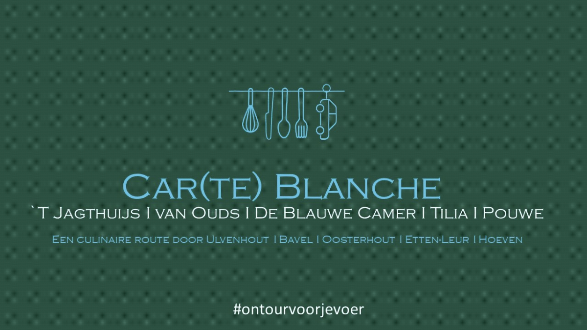 Laat je inspireren door al het moois wat ons prachtige, Brabantse landschap te bieden heeft! Op zondag 25 april organiseren Restaurant Van Ouds, 'T Jagthuijs, De Blauwe Camer, Tilia en Pouwe van 11:00u tot 16:00u namelijk een culinaire route door Bavel, Ulvenhout, Oosterhout, Etten-Leur en Hoeven.