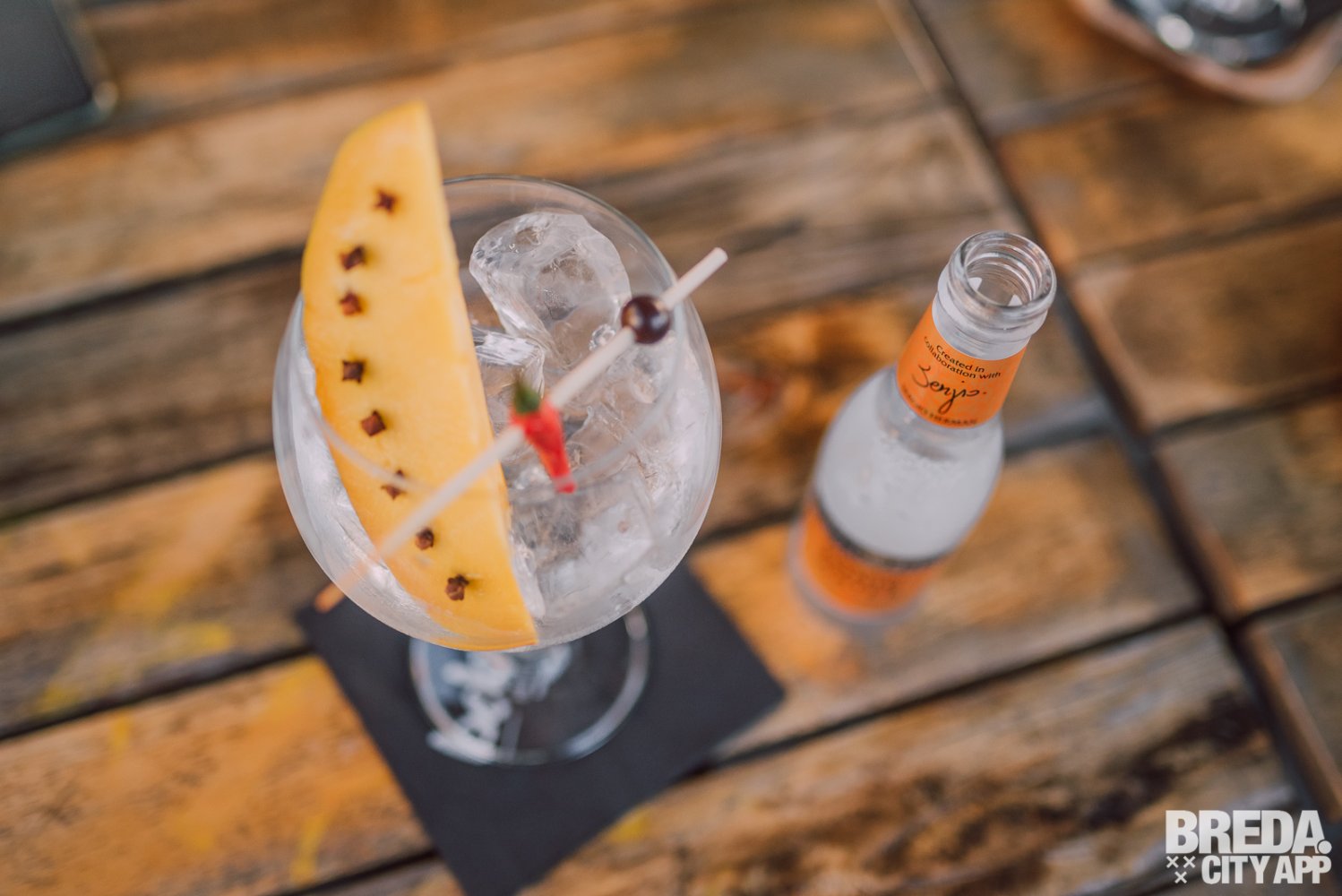 Daarnaast proberen we een gin-tonic; de Kinross Tropical & Exotic Fruit. De opmaak is fantastisch en lekker vrolijk, met mango, kruidnagel en een kleine rode peper. Dit maakt ons erg nieuwsgierig naar de smaak van deze gin-tonic.