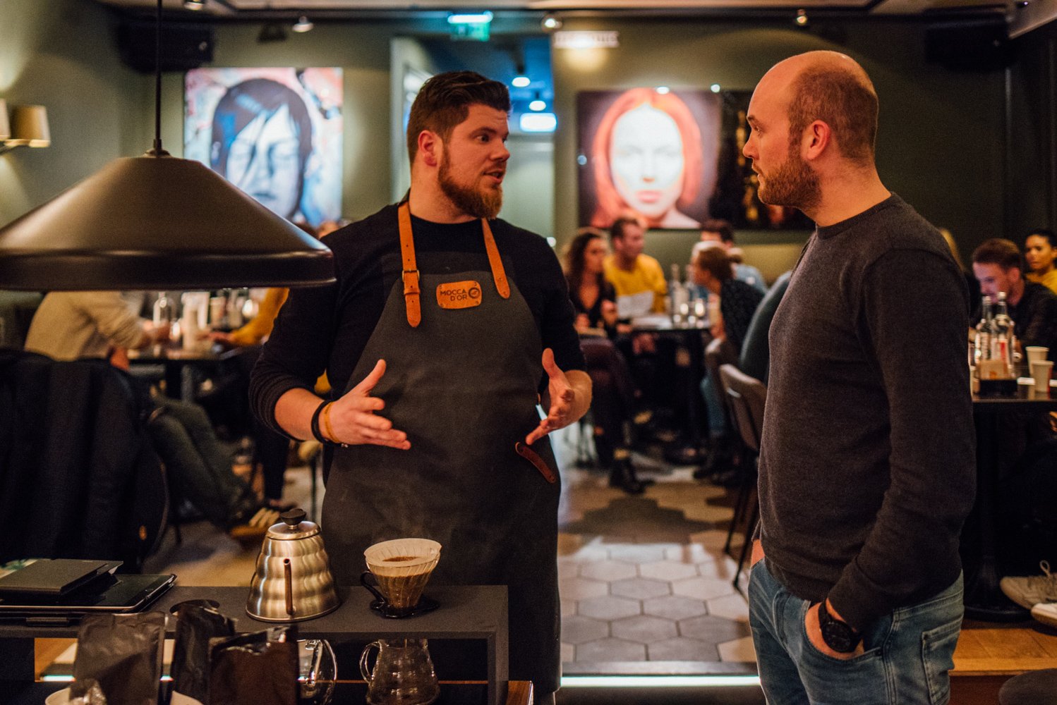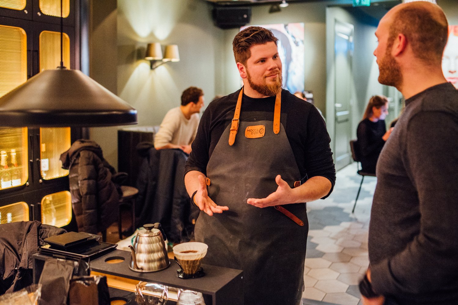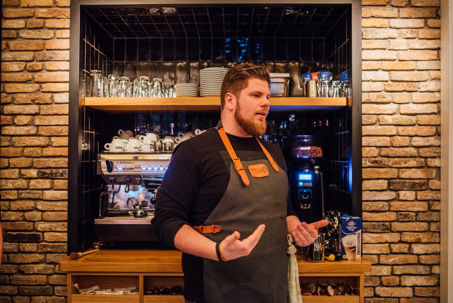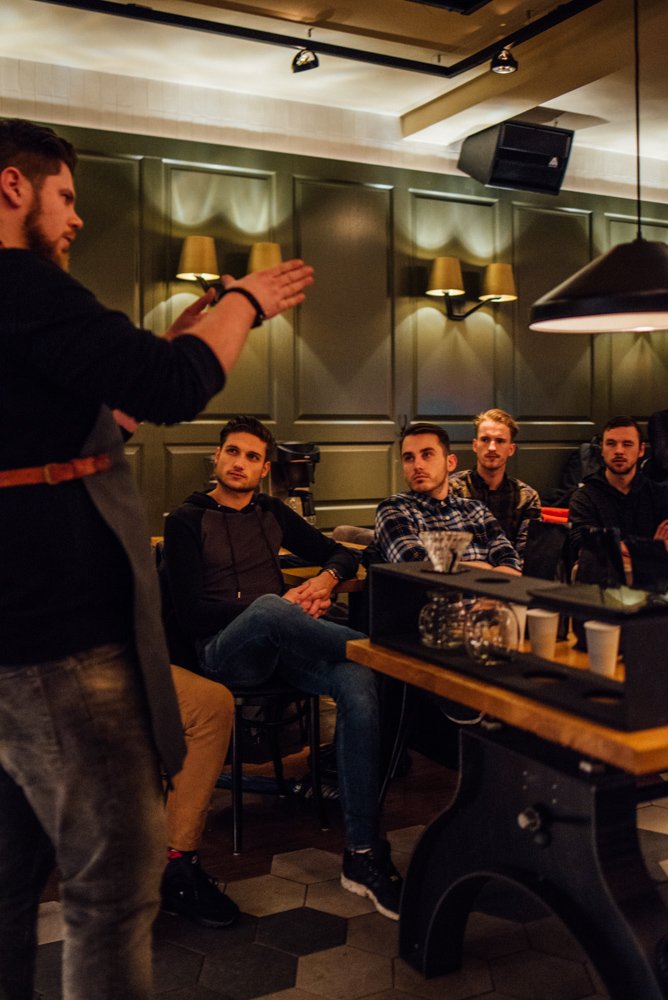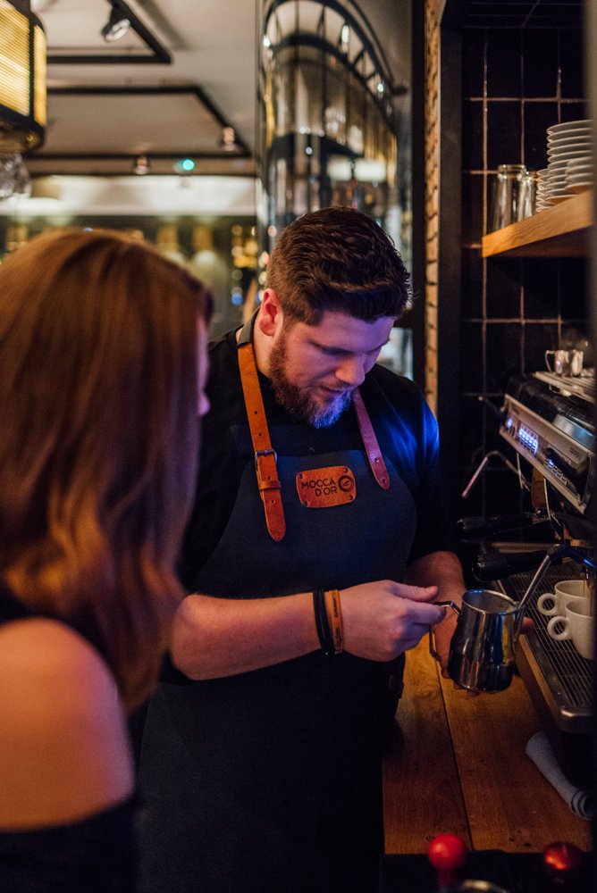 Om alles te weten te komen over de laatste trends en tips & tricks op het gebied van koffie organiseren we in samenwerking met Mocca d’Or een masterclass. Met een groep koffieliefhebbers en ondernemers uit de horeca verzamelen we bij Café Noir aan de Ginnekenweg. We worden hier hartelijk ontvangen door koffie-addict en hoofd barista van Mocca d’Or: Joël Martens.