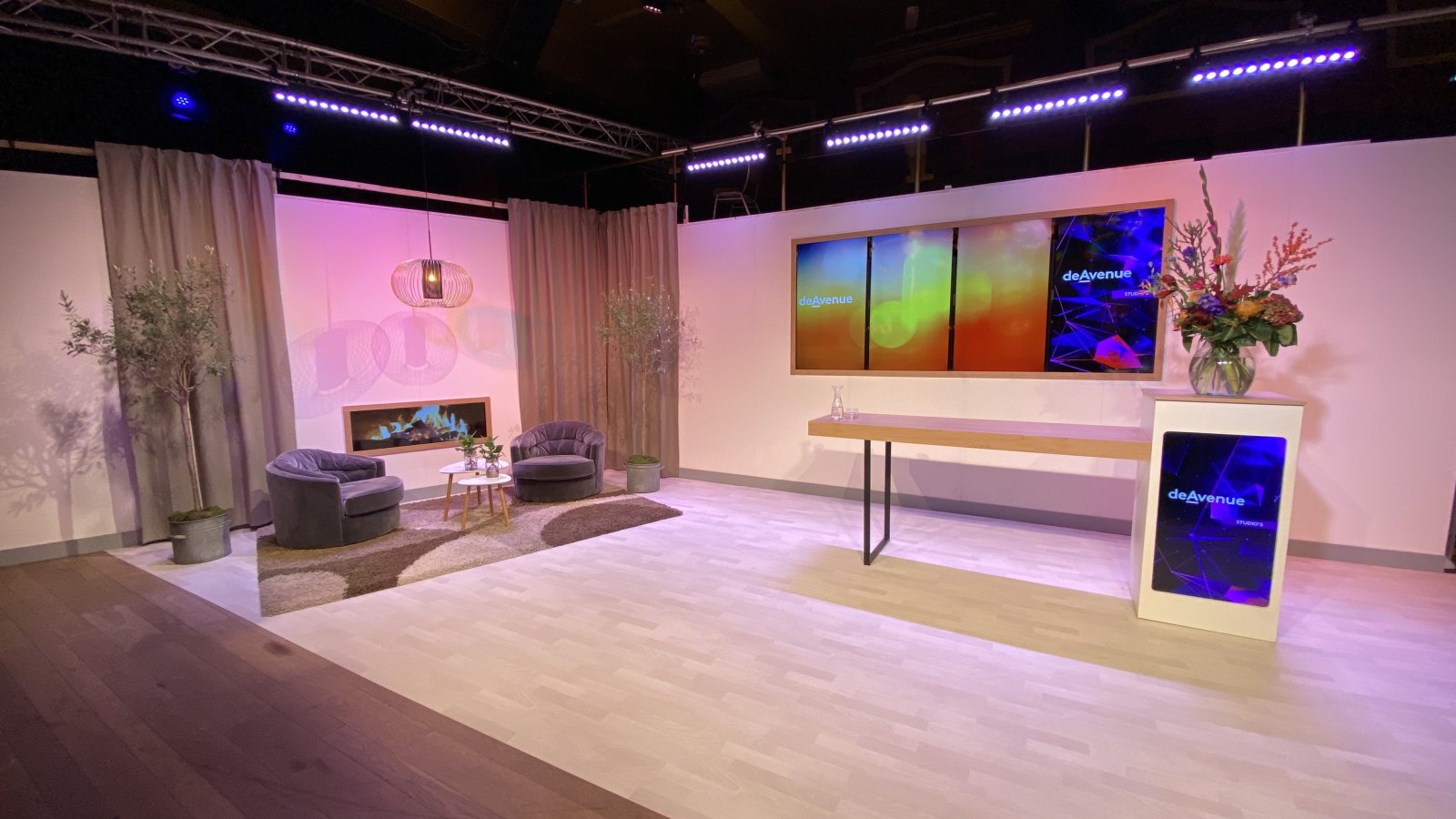 De Avenue faciliteert twee totaal verschillende live studio’s. Studio 1; een moderne zakelijke studio en Studio 2; een authentieke studio. Beiden geheel naar jouw wensen in te richten en te customizen. In combinatie met de (technische) kennis en kunde die zij in huis hebben, wordt een unieke beleving gecreëerd en wordt ervoor gezorgd dat jouw live evenement bij de beoogde doelgroep (thuis) wordt ontvangen. En dat alles op veilige afstand. In beide studio’s zijn alle technische faciliteiten aanwezig om van jouw live activiteit een succes te maken. Zo beschikken de studio’s over onder andere een presentatie-wall, een desk, eigen kleedkamers, een green room en passend meubilair.