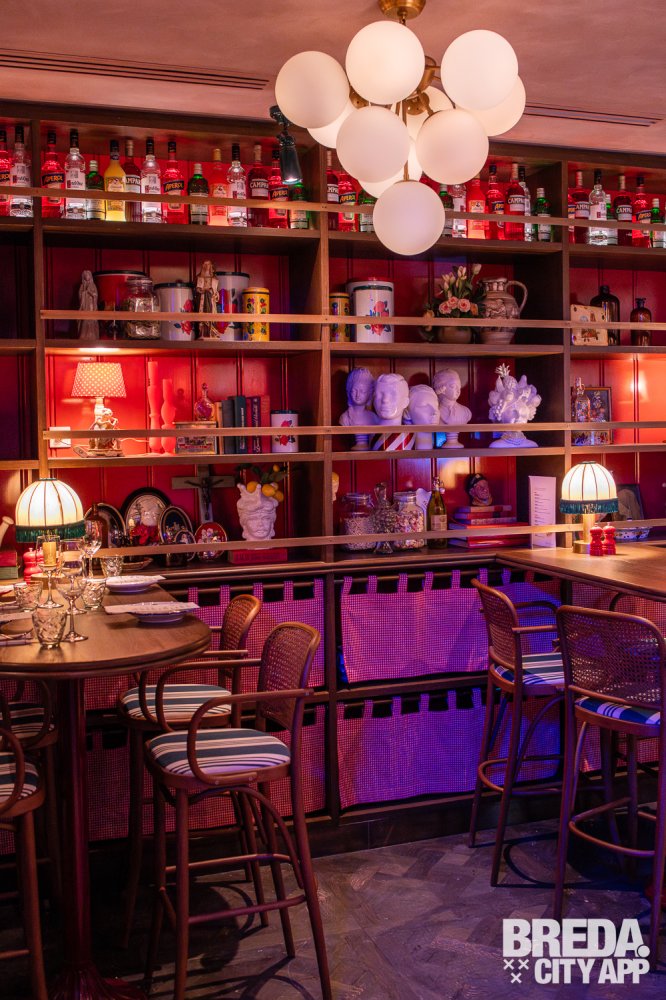 Rondom zijn allerlei mooie zitjes gecreëerd met zowel hoge als lage tafels en waanzinnig gave lampen. Achterin zit de open keuken, waar alle Italiaanse lekkernijen voor je worden bereid.
