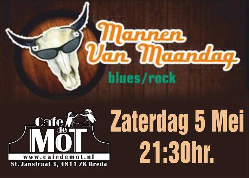 Op bevrijdingsdag, Zaterdag 5 Mei 2018 is het de perfecte dag om de "Mannen van Maandag" dan eindelijk ECHT (proberen) te bevrijden van Henk de Roo. De afgelopen weken heeft Henk echt van alles geprobeerd om dit afscheid uit te stellen, maar Café de Mot en De Mannen zijn er nu wel een beetje klaar mee. Kom genieten van de ruige onvervalste rock/blues van deze band, die inmiddels welbekend is in Breda en wijde omstreken. Wees er allemaal bij en maak er een supermooi en passend afscheid van Henk in de “2e Hansstraat”!