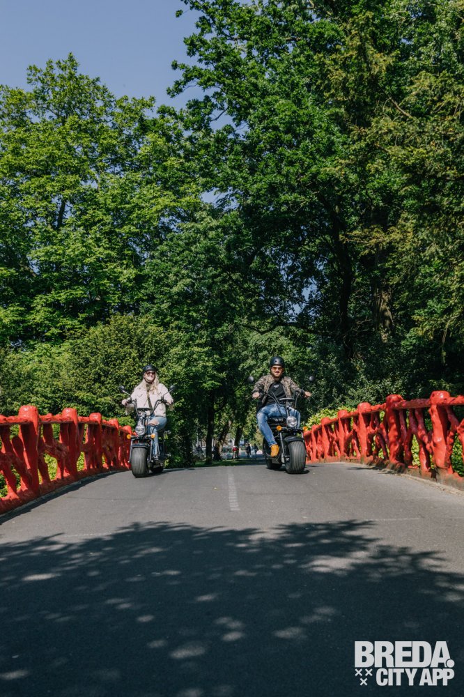 Op het randje van de stad aan de Tilburgseweg haal je op reservering jouw E-Choppers. Met vrienden en familie scheur jij ook met grotere groepen in de zomer door het kleurrijke Breda. Vandaag stappen wij met z’n vieren op de E-Choppers. Wij kennen Breda op zijn duimpje maar is de stad niet zo bekend voor je, kan je vooraf routes aanvragen via route.nl. Experience Entertainment zorgt voor een aantal leuke routes waar jij uit kunt kiezen. Ga lekker offroad en volg de paden door de verschillende gebieden.