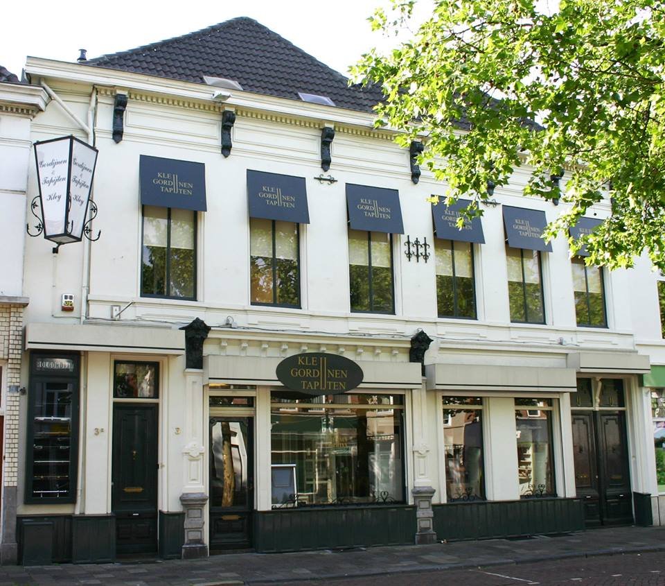 Helemaal aan het begin van de Nieuwe Haagdijk valt ons oog op Kleij Gordijnen en Tapijten. Dit is een écht familiebedrijf wat inmiddels gerund wordt door de de vierde generatie. Het karakteristieke pand ademt een bijzondere sfeer waarin we de vele soorten gordijnen en tapijten bekijken.