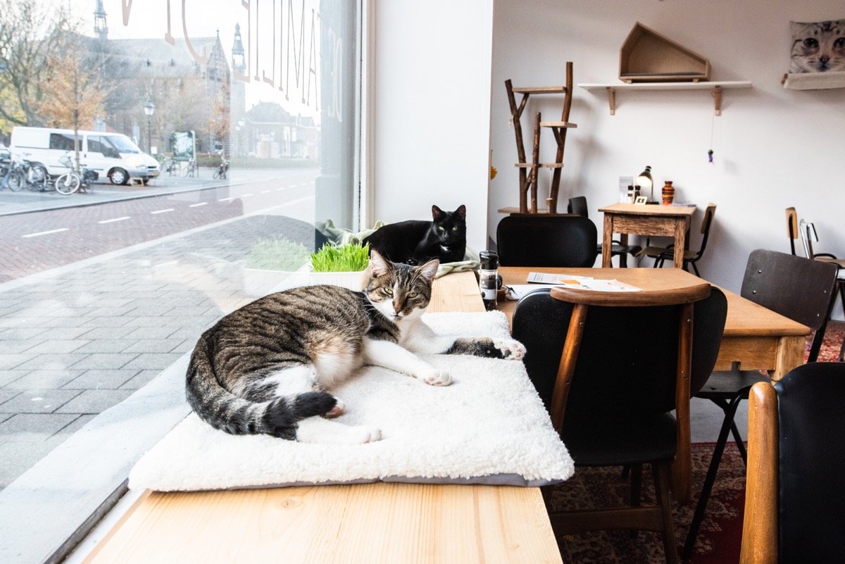 Vier asielkatjes hebben er hun thuis gevonden. We nemen plaats aan een tafeltje en worden vergezeld door juffrouw Pruim, Masja, Luna en Stella terwijl we thee drinken en bijkletsen met elkaar. Bij Kattencafé Familie Snorhaar kun je ook terecht voor diverse activiteiten zoals cats and yoga, spelletjesavonden, filmavonden en lezingen over bijvoorbeeld kattengedrag. Wat een leuk concept!