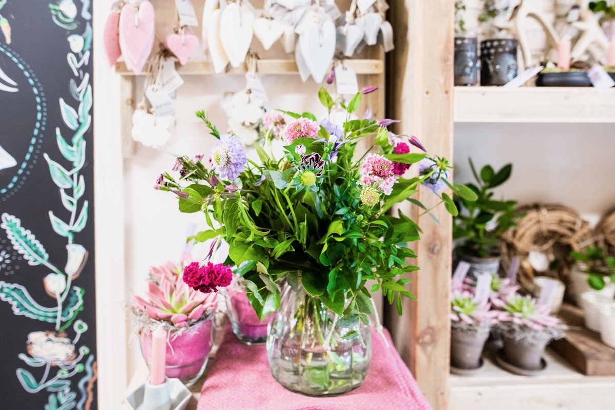 Na genoten te hebben van de koffies en taartjes, lopen we een stukje verderop binnen bij kAnjer in bloemen. Dit is een eigentijds bedrijf dat gespecialiseerd is in boeketten, bloemstukken, rouw- en bruidsboeketten en bedrijfsabonnementen.