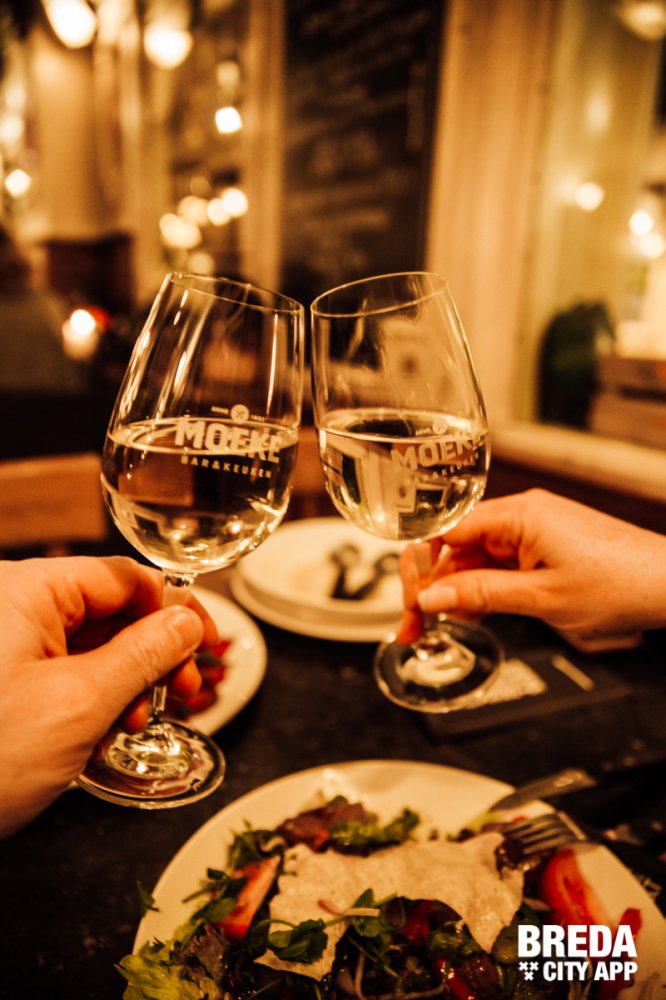 Even langs bij ons Moeke dat betekent gezelligheid, heel veel eten, een goeie borrel en lekker keuvelen. En dat is bij Moeke op het Ginnekenmarktje precies zo. Als we binnenkomen op dinsdagavond zit de prachtige zaak al bijna vol. En we hebben er zin in!
