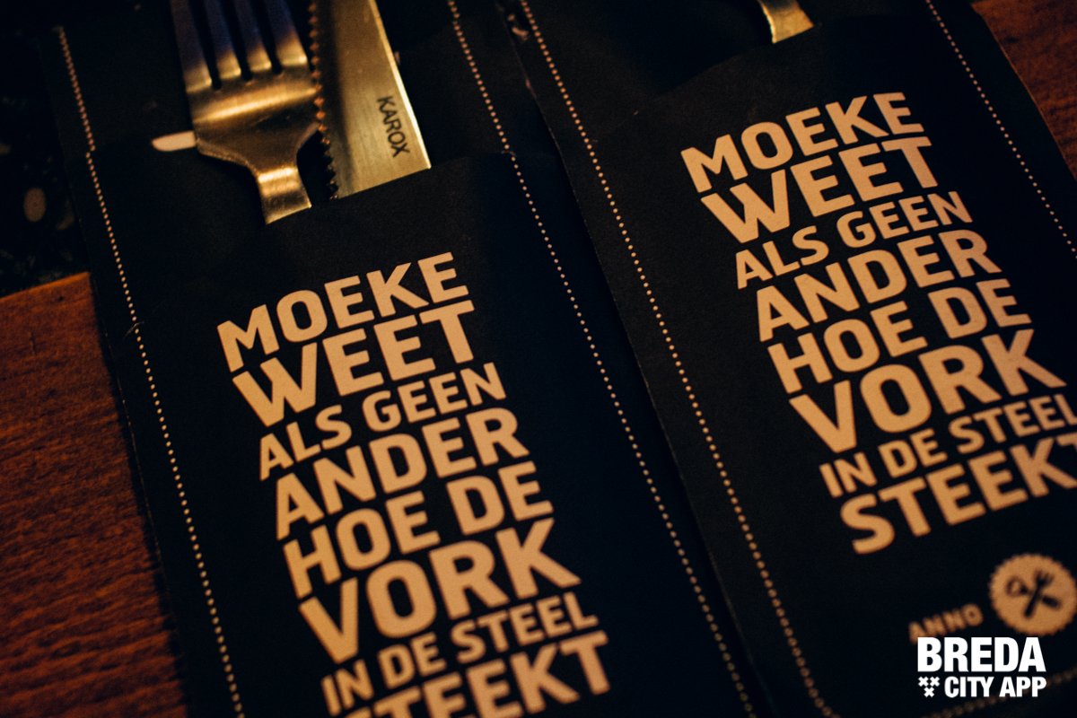 We nemen nieuwsgierig een kijkje in de uitgebreide menukaart. We zien broodjes, soepen, salades, saté, burgers, spareribs, vegetarische gerechten, de heerlijkste desserts en koffies. Hier ga je eten met je lief, maar ook met het gezin als je geen zin hebt om te koken, want iedereen vindt wel iets lekkers op de kaart. Maar Moeke is ook een borrel café waar je met vrienden in de namiddag een speciaalbiertje gaat drinken en daarbij lekkere hapjes bestelt.