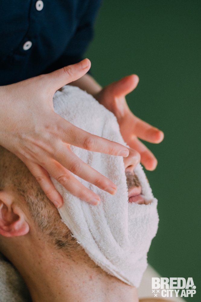 Nu is het tijd om met de behandeling te starten. Ik mag mijn bovenkleding uittrekken en plaatsnemen voor een rug massage met warme olie. Een fijne start van de behandeling die mijn hele lichaam ontspant. De behandeling gaat verder met twee reinigingen van het gezicht, waarbij zachtschuim met Japanse penselen over mijn huid wordt gemasseerd. Het voelt erg prettig en ontspannend aan. Daarna volgt een tweedelige peeling en een serum dat het herstel en de stevigheid van de huid bevordert, en de immuniteit verbetert.