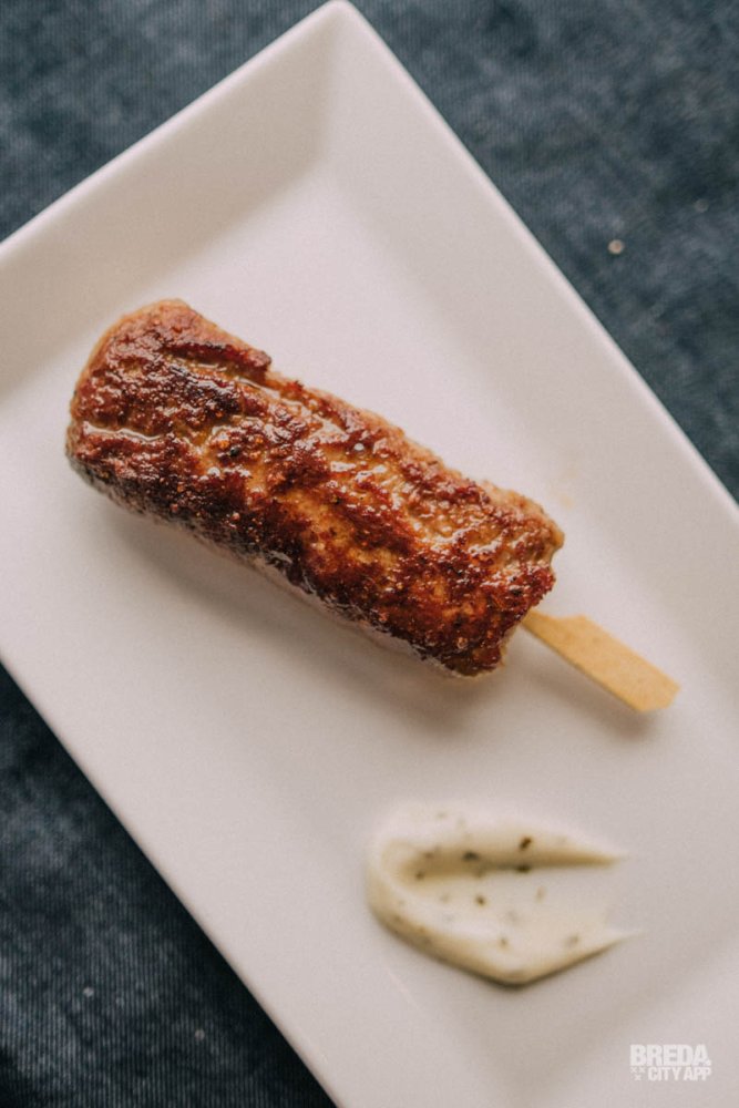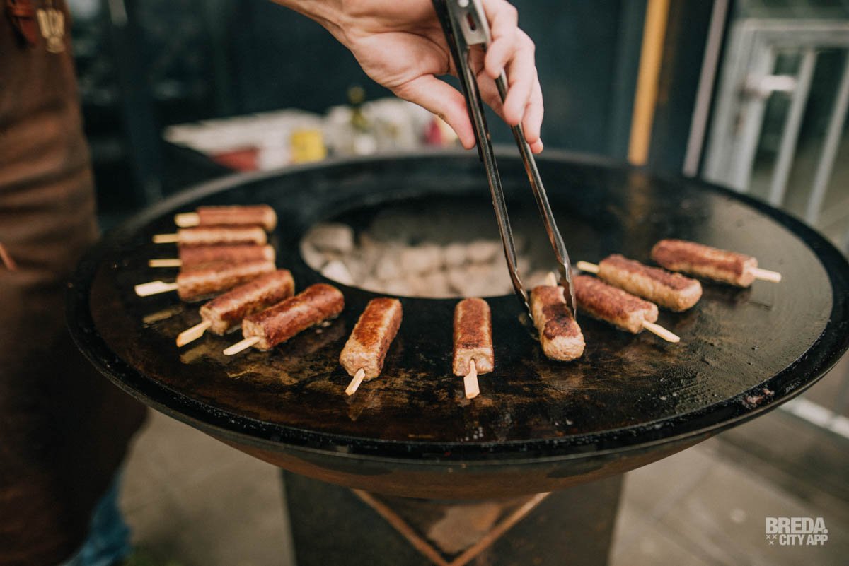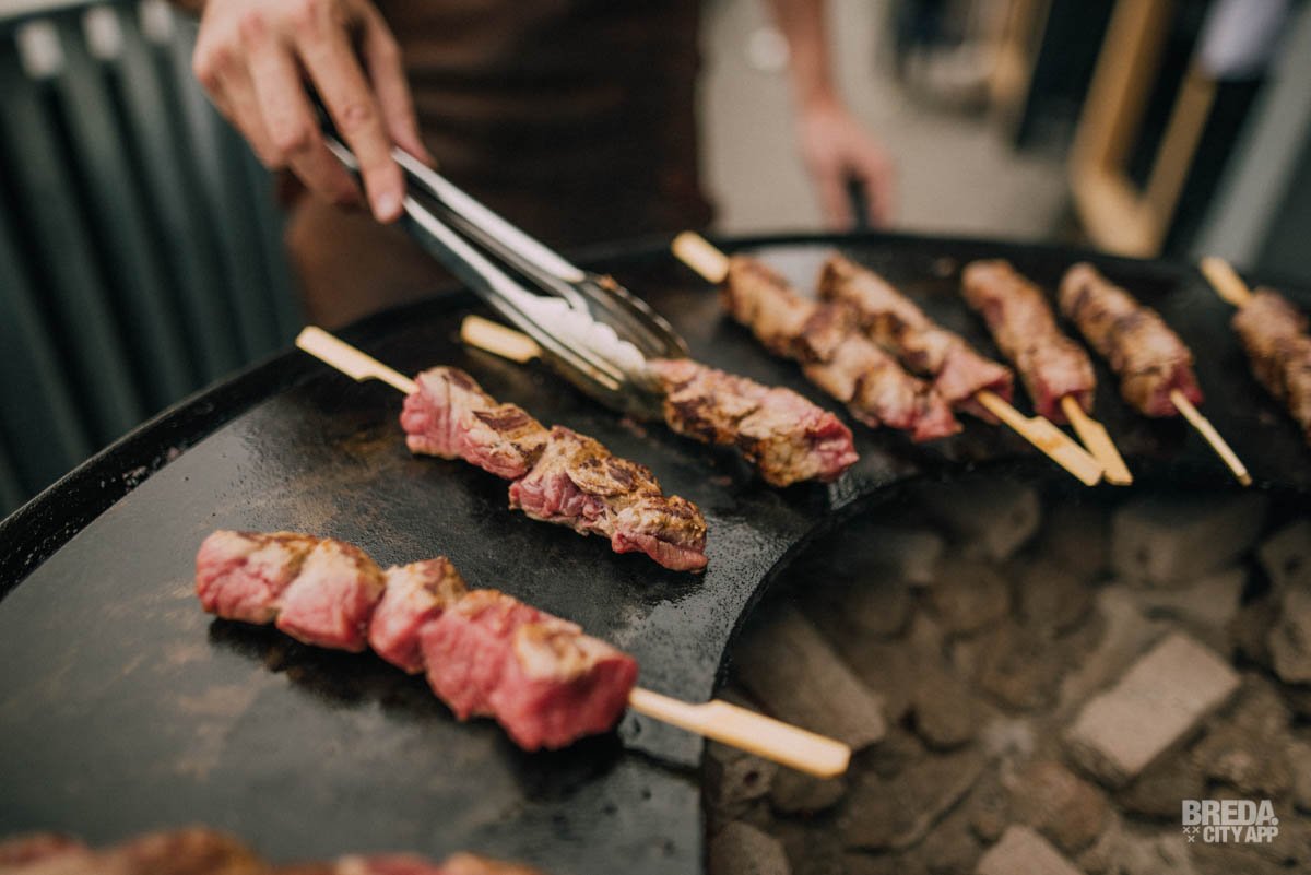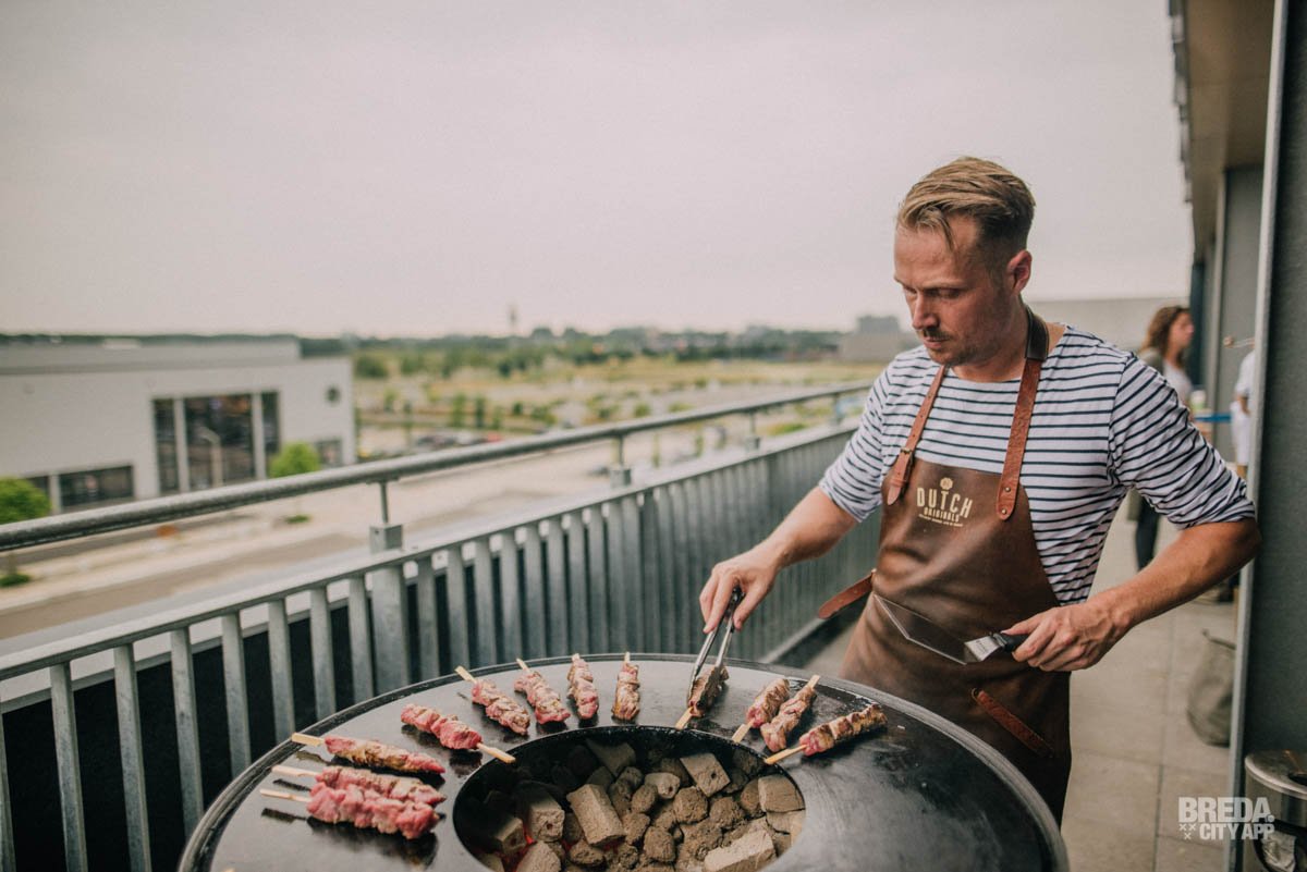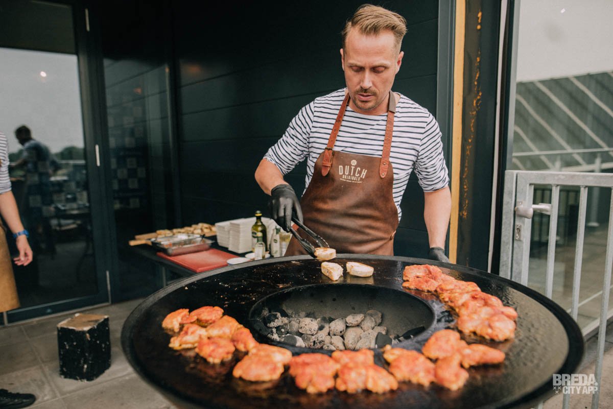 Na het ontsnappen uit BASE48 vervolgen we onze weg naar het terras waar Remco alle voorbereidingen aan het treffen is voor de BBQ. We nemen plaats aan de gezellig ingedekte tafels en zijn erg benieuwd naar alle heerlijkheden die we klaar zien staan. De BBQ bestaat uit maar liefst vijf gangen. We beginnen met een bruschetta, gevolgd door heerlijk malse kippendij, een minihamburger met bbqsaus, lamsspiesjes met knoflooksaus, ossenhaasspiesjes met limepepper, speklapjes en als kers op de taart een heerlijk dessert bestaande uit; tiramisu, cake, slagroom, kletskop, framboos en Johnny Doodle Chocolade, Mmm...