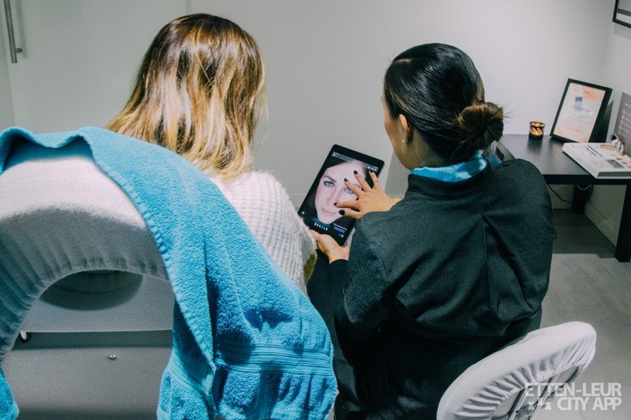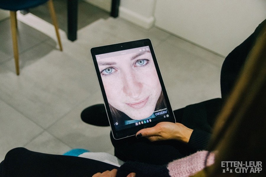 Op een formulier mag ik aangeven of ik bepaalde klachten ervaar met mijn huid, ik geef hierbij aan dat ik in de wintermaanden vaak een droge huid heb en een wat grauwere tint heb op mijn gezicht, mede door mijn sproetjes. Su Chên neemt de lijst door en vraagt of ik haar wil volgen naar de Observ Huidscanner. Dit apparaat gaat mijn huid met verschillende soorten licht gaat fotograferen om te zien wat voor behandeling passend is. Nadat de foto’s zijn gemaakt gaan we door naar de behandelruimte, deze oogt heerlijk rustgevend. Ik neem plaats in de stoel en we bekijken de foto’s, door het licht in de Observ Huidscanner komen mijn sproeten naar voren, welke een stuk meer zichtbaar zijn als in het normale leven. Ook ik als 27 jarige “jonge bloem” moet eraan geloven, de eerste rimpels rondom mijn ogen en op mijn voorhoofd zijn een feit. Ook deze zijn goed zichtbaar op de foto’s. Laten we vooral niet te lang wachten op de behandeling.